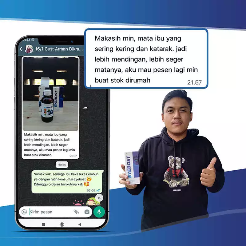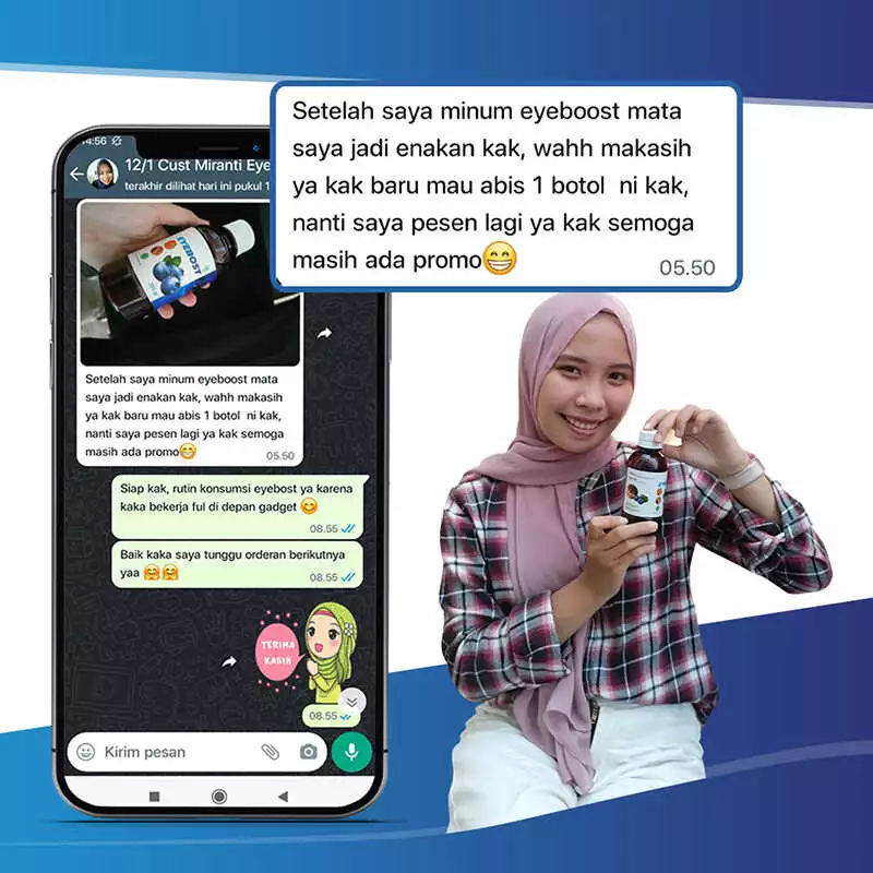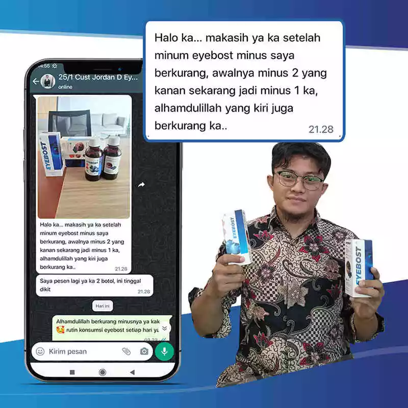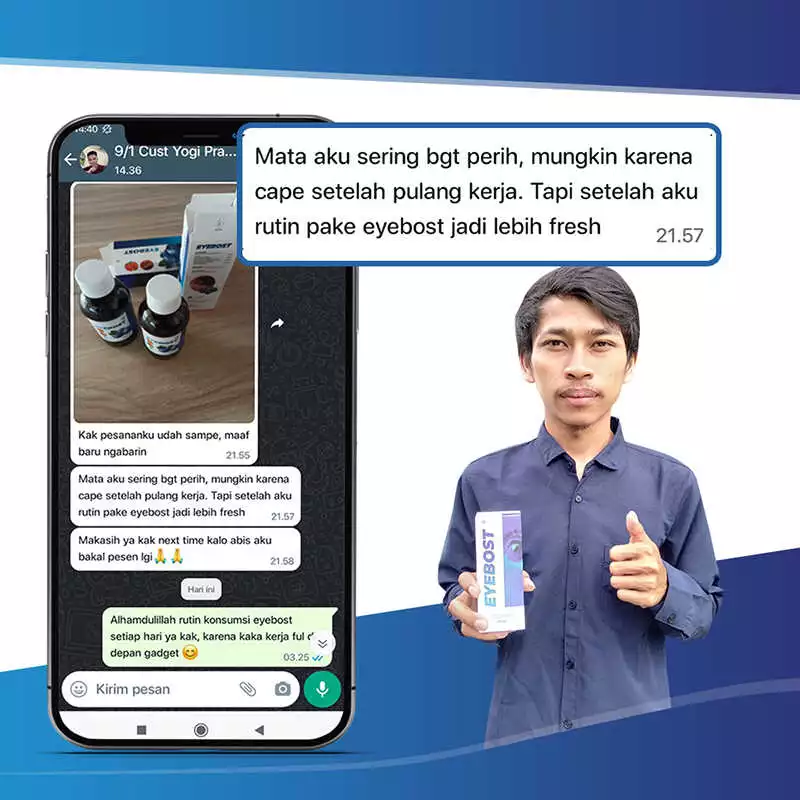 Dapatkan Eyebost, vitamin mata terbaik dengan formula alami yang 4x lebih ampuh dalam merawat dan menjaga kesehatan mata.